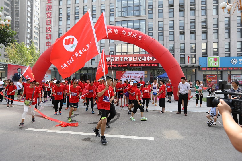 7月1日,泰安市主题党日活动中心携手山东夫如体育文化发展有限公司举办了“脚踏实地,为党庆生”主题活动赛事。180名身着“永远跟党走”红色衣衫的“夫如”体育爱好者,齐聚市主题党日活动中心,用红色传承+红色颂读+红色歌曲串烧凝聚红色力量,用平板支撑+列队竞跑等“悦”跑形式为党的97岁生日庆生。