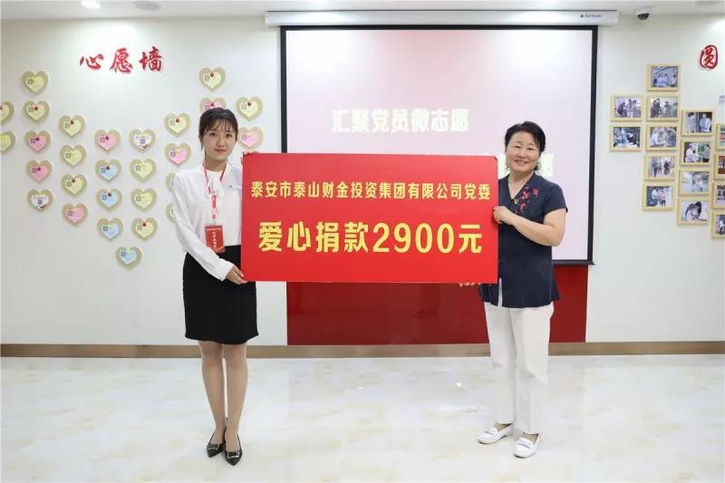8月13日下午,市泰山财金投资集团有限公司党委的党员们来到市主题党日活动中心,开展“新时代、新担当、新作为”主题党日活动。在爱心驿站,党员们以党委的名义为“泰山先锋”慈善基金注入善款2900元,虽然没有轰轰烈烈的壮举,但用实际行动彰显了共产党人的为民情怀。