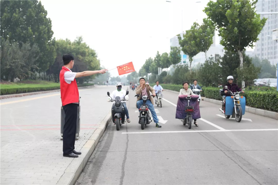 9月17日下午,岱岳区委组织部组织区直各部门单位召开会议,根据市委《关于开展“泰山先锋”文明交通志愿服务活动的通知》的要求,结合岱岳区实际,发动各部门单位组织党员志愿者在交通路口开展文明交通引导活动,在主要交通路口和斑马线处引导非机动车按照红绿灯指示文明过马路,引导行人不闯红灯、不乱穿马路、不翻越护栏。对行人不走人行道、闯红灯及非机动车遇红灯超越停车线、在人行道上骑行等不文明行为进行劝阻、纠正。 9月18日一大早,细心的市民发现,在岱岳区各街道的交通路口,身穿“泰山先锋”志愿服务红马甲、手拿小红旗的人在维持交通秩序,劝导不文明交通行为。他们不是交警,但却为了市民的交通安全出行忙碌着,把时间“牺牲”在各个交通志愿服务站点。他们也不是专职聘用的交通协管员,可是却做着和协管员一样的工作,不同的是,他们是无偿的、志愿的。这支规范、有素的文明交通志愿者队伍,分别来自岱岳区各机关部门、单位。志愿者们分成若干支小分队,负责协助维护交通秩序,引导市民文明出行等工作。